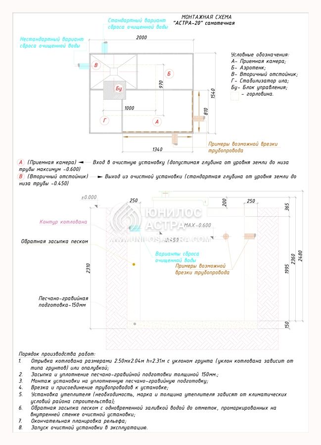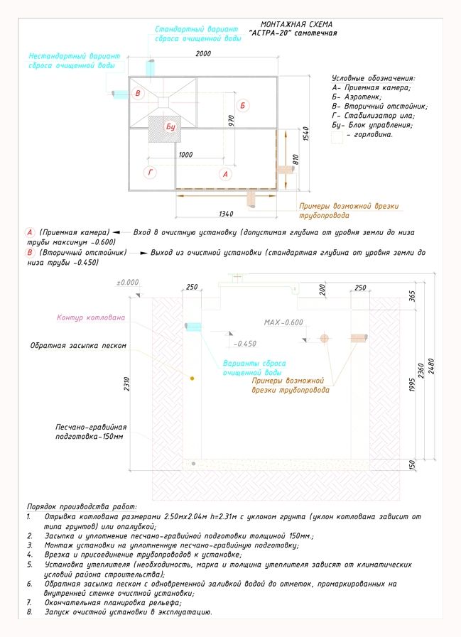Септик Астра 20 устанавливается в следующей последовательности: